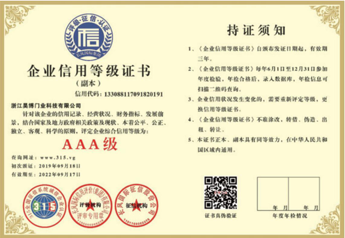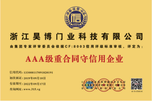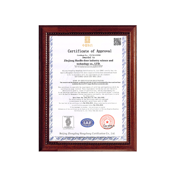 公司一直以來嚴格執(zhí)行ISO9001質量體系和ISO14001環(huán)境管理體系標準,建立了完備的科研、開發(fā)、生產(chǎn)、銷售服務體系。公司是浙江省門業(yè)協(xié)會會員單位,江山門業(yè)協(xié)會理事單位,中國木材與木制品流通協(xié)會會員單位,江山市消防協(xié)會副會長單位。